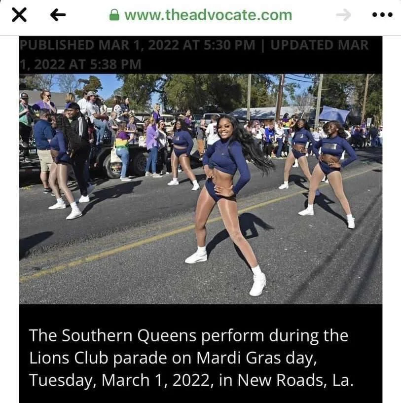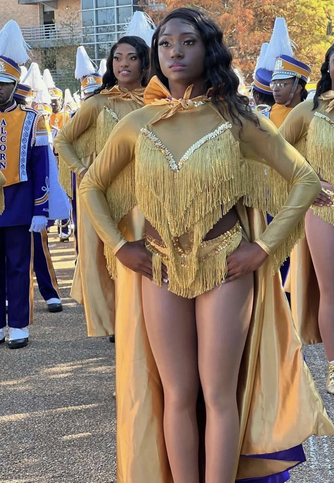 Shawndrielle is the first Southern Queen to perform with an auxiliary in front of a marching band known as the Sounds of Dyn-O-Mite, the first dancer from her hometown to dance with the Alcorn State University Golden Girls, and the second HBCU dancer from our company.